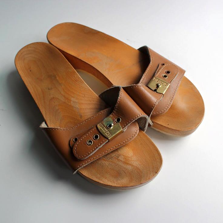 It started as a fad, became a craze and before you could say "clip clop", every foot was gripping the wooden sole of these exercise sandals. A colored, leather strip stopped us falling out of the sandals, as did the adjustable buckle. I nagged my mom for ages for some and, when I had finally ground her down, I was the proud owner of a pair.I wore them all the time, until the leather strip stretched so much that my feet were slipping out and I kept grazing my toes - ouch! Then I would wear a pair of thick socks with them and use them as slippers.