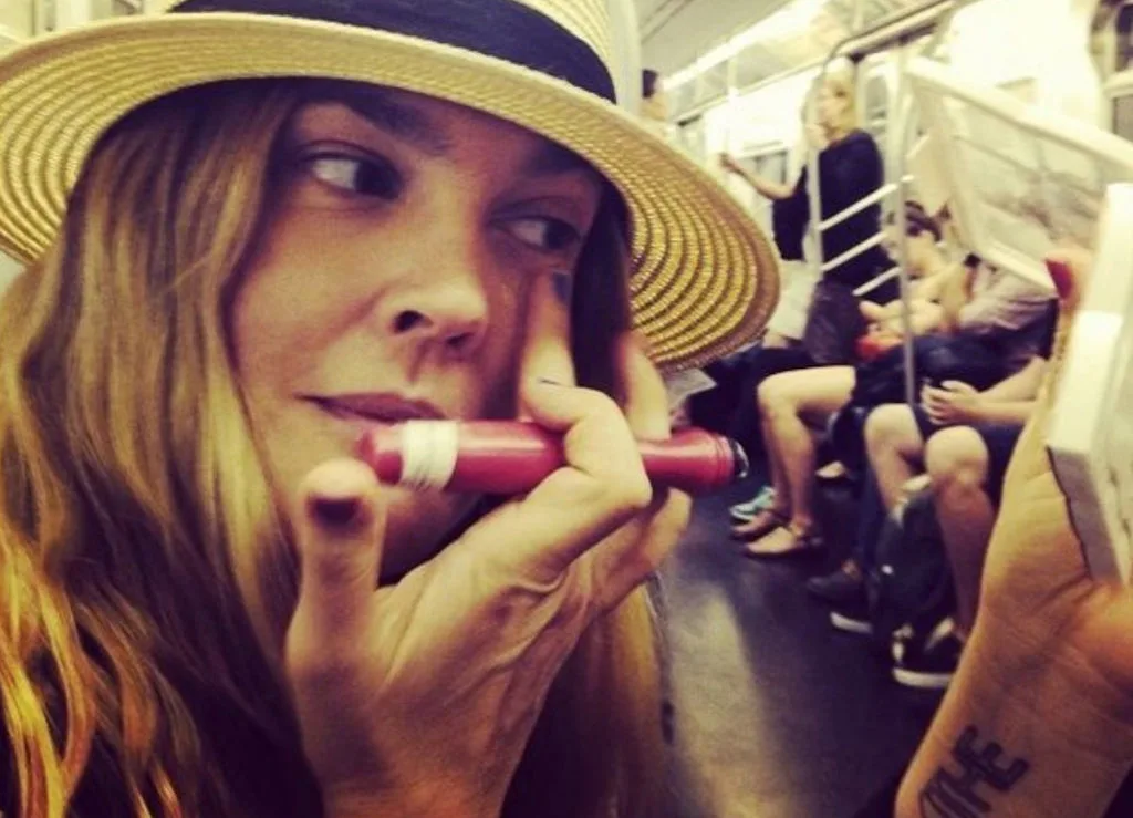 Image Source/ InstagramNot all celebrities get a full makeup team to put slap their products on in the morning, y'know. Actor Drew Barrymore knows the struggle and was caught applying some lippy while riding the train to work, or out with her friends, who knows. A true city gal.Advertisement