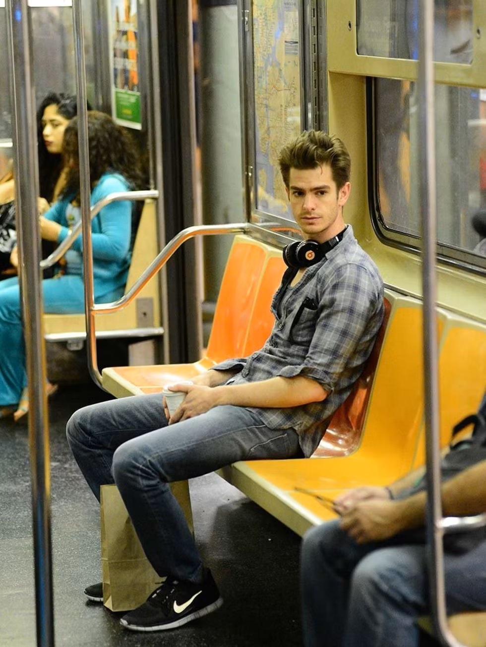 Image Source/ Clickzoom.netLooking like a still taken straight from the Amazing Spider Man, it looks as though Andrew Garfield doesn't live much different to Peter Parker. He was photographed travelling across New York City, and looked quite surprised by the encounter.Advertisement