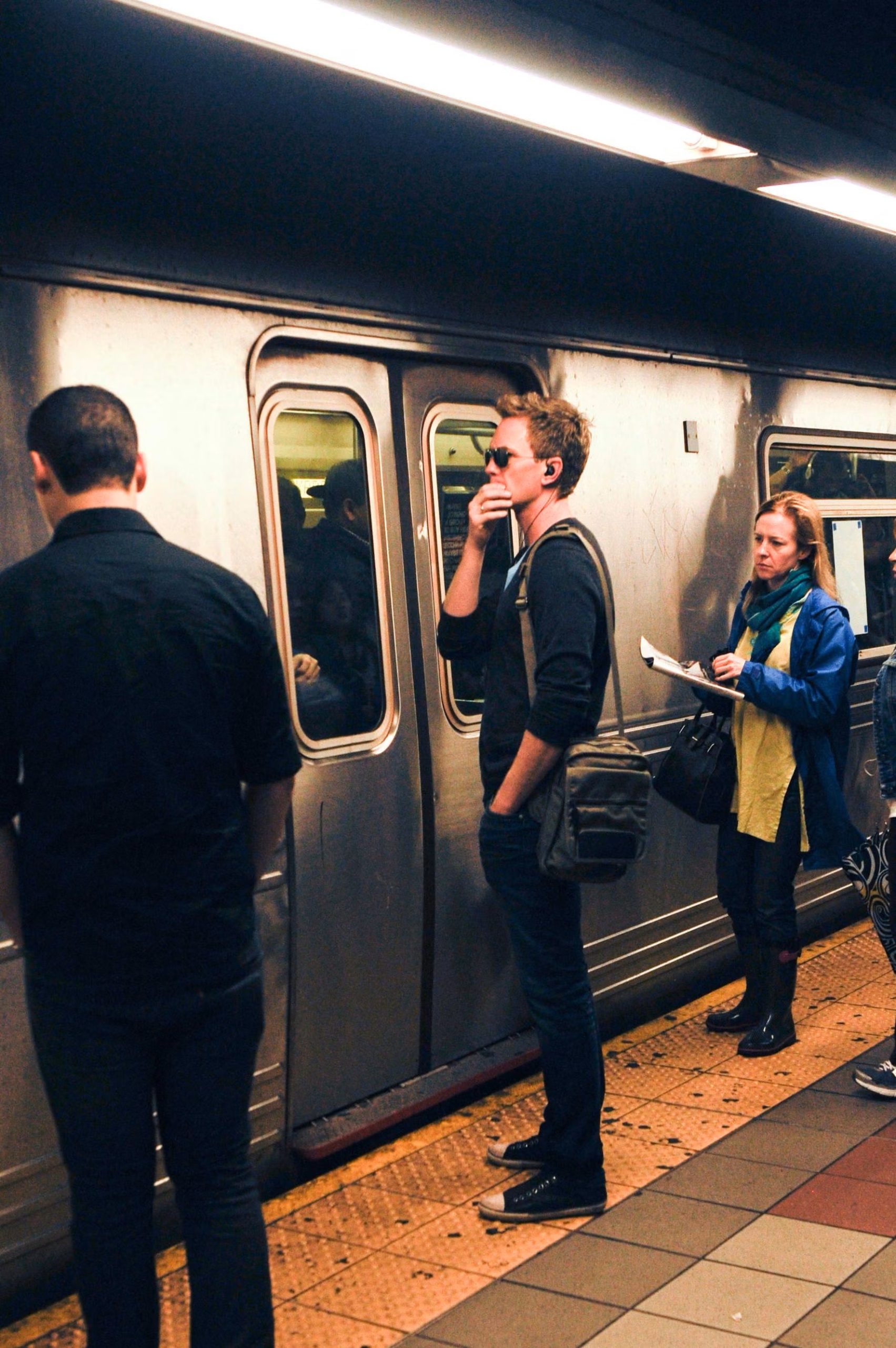 Neil Patrick Harris awaits his turn on subway platform