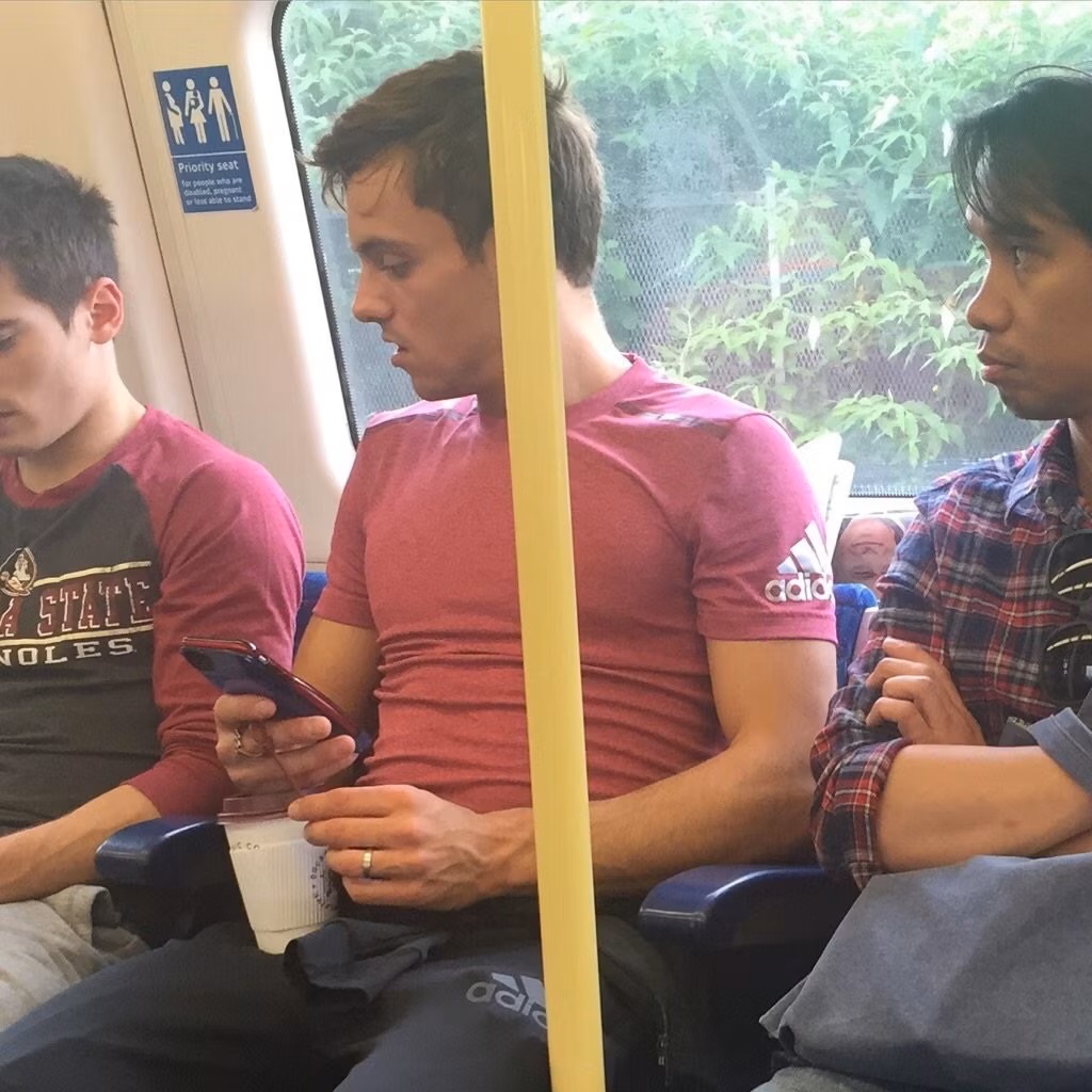Image Source/ tubecrush.netOlympic medallist Tom Daley has been sighted and photographed multiple times using the underground train system in his hometown of London, where he evidently has no problem travelling the city by tube. He was just 13 years old when he kickstarted his career as a diver.Advertisement