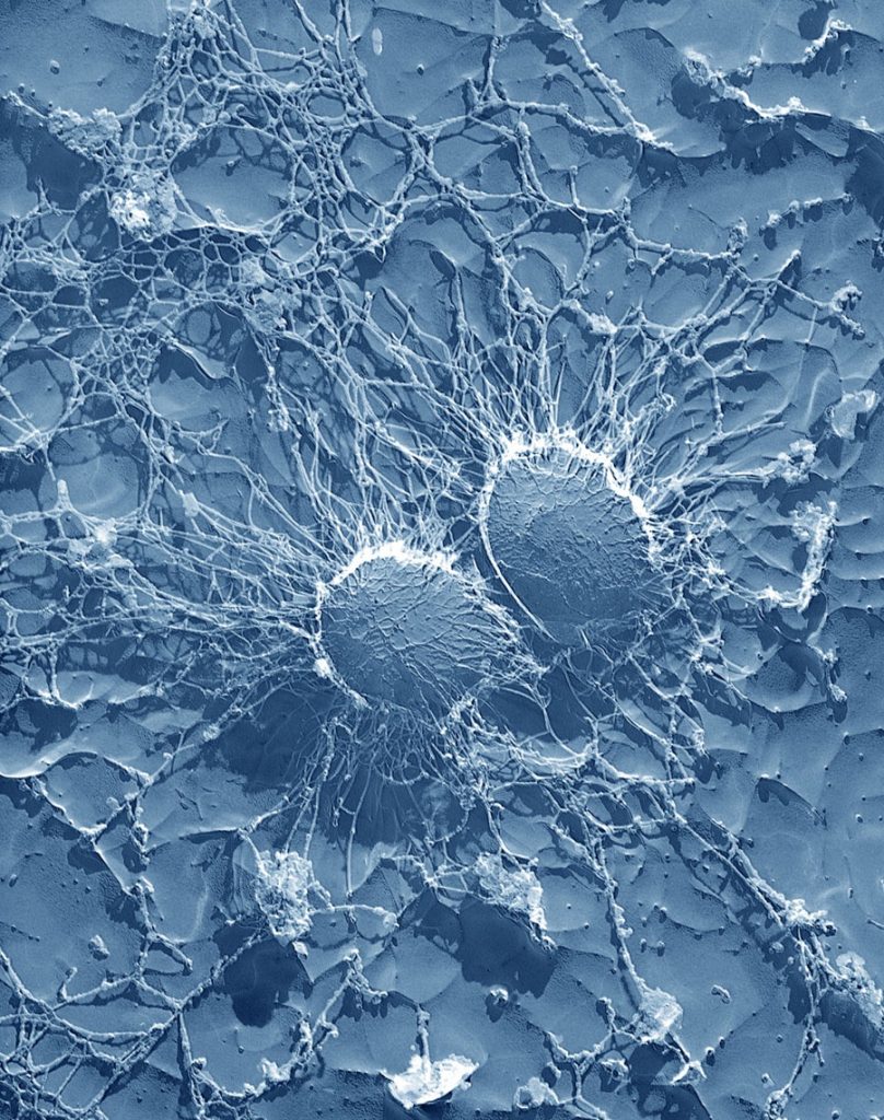You might have heard of epoxy resin, which is a substance often used in manufacturing and even small-time crafts as a means to use as an adhesive. It usually comes as two parts which can bond together, good for repairs on different materials. What you see here is the bonding process of epoxy resin under a microscope! The arm looking things are the fibers of the resin itself, which are assembling around a small ball of polystyrene material. In theory, it shouldn't be creepy at all, but when you see it like this looking like lots of weird arms, it definitely is!Advertisement