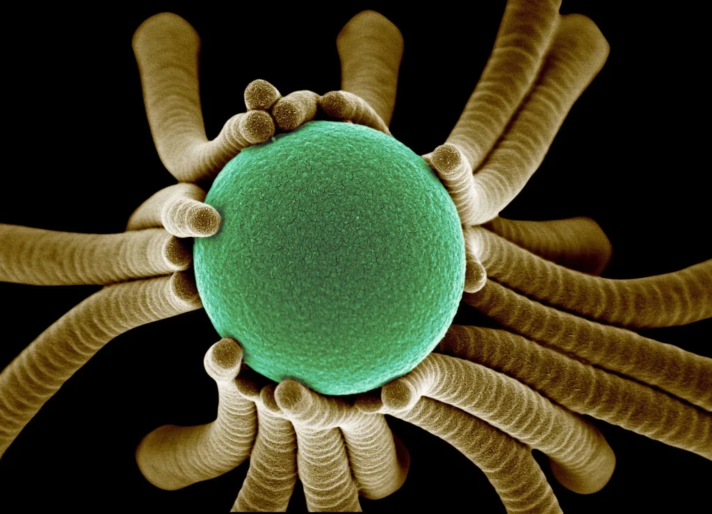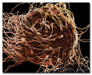 We've all seen at least one photo of a female egg and a male sperm, like in school science class when you weren't really interested, but you might not have seen one at this terrifying microscopic level! In our mind, sperm just looks like tadpoles and an egg looks like... well, a round egg. But when you have the fertilization process under a microscope, you basically have the egg getting absolutely swarmed by long stringy things that look like spaghetti, and has now probably changed your whole idea of what goes on in the body when someone is trying to get pregnant!Advertisement