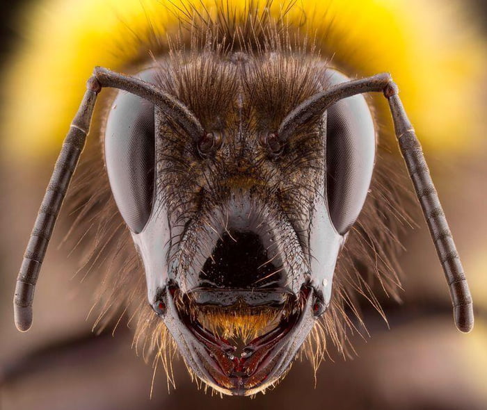 Bees are a key part to a thriving ecosystem, and play a major role in the maintenance of a beautiful garden. Some people do see them as a nuisance, but they are relatively harmless and are amazing pollinators. Despite this, they have a somewhat odd view under a microscope. Their face looks as if they're smirking, and are plotting something mischievous.Advertisement