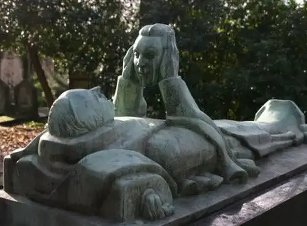 The grave of pianist and artist Fernand Arbelot is found in the Pere Lechaise cemetery in Paris, and it includes one of the most beautiful and strange gravestones in the world. The man lying down is Arbelot but not much is known about who the other statue - or, rather, head - is supposed to be, though most believe it's his wife.