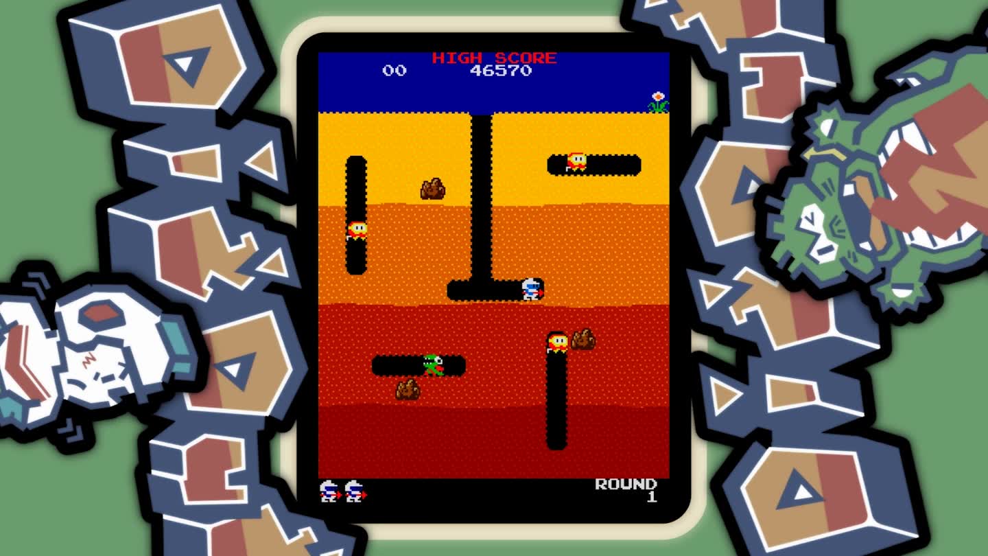 Dig Dug was released in 1982 with the aim of the game to dig around and eradicate any underground monsters, shooting them with a homemade air-pumping contraption and inflating them until they exploded! It was very satisfying to see the green dragon-like monsters pop!Advertisement