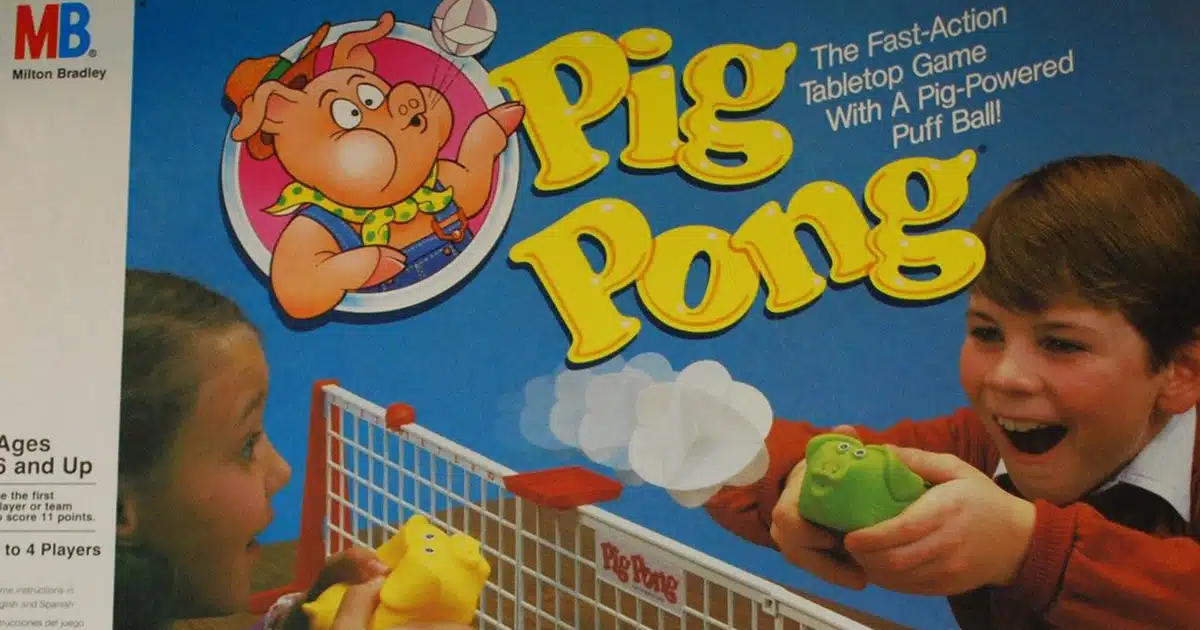 Pig Pong was a game that many of us kids wrote on our wish list for Christmas! It was advertised as "the fast action tabletop game with a pig-powered puff ball." It was pretty much a mixture of badminton and table tennis and was quite addictive once you started playing with it.Advertisement