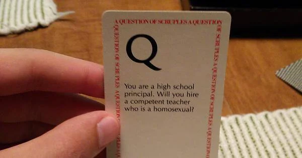 Scruples was a card game based on dilemmas you think might happen and think what others would do in embarrassing situations. It was a game geared towards adults and they played it at dinner parties. The Scruples junior edition was much more suited to us youngsters.Advertisement