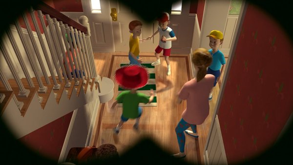 Image source Disney/PixarThe detail in the animation is quite incredible and is noticeable right from the very beginning of the film.  When the toys gather in Andy's room before the birthday party, you can see their accurate reflections and shadows against the wooden bedroom floor.