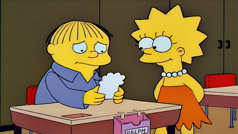 Image source Disney PlusThere's nothing so difficult and heart-wrenching as young love. When Ralph Wiggum mistakes Lisa’s kindness as genuine affection (because she sent him a Valentines Day card out of pity), he goes out of his way to woo her. She decided to go along with it for a while before rejecting him .... on live TV. A lesson not to do in the art of love!