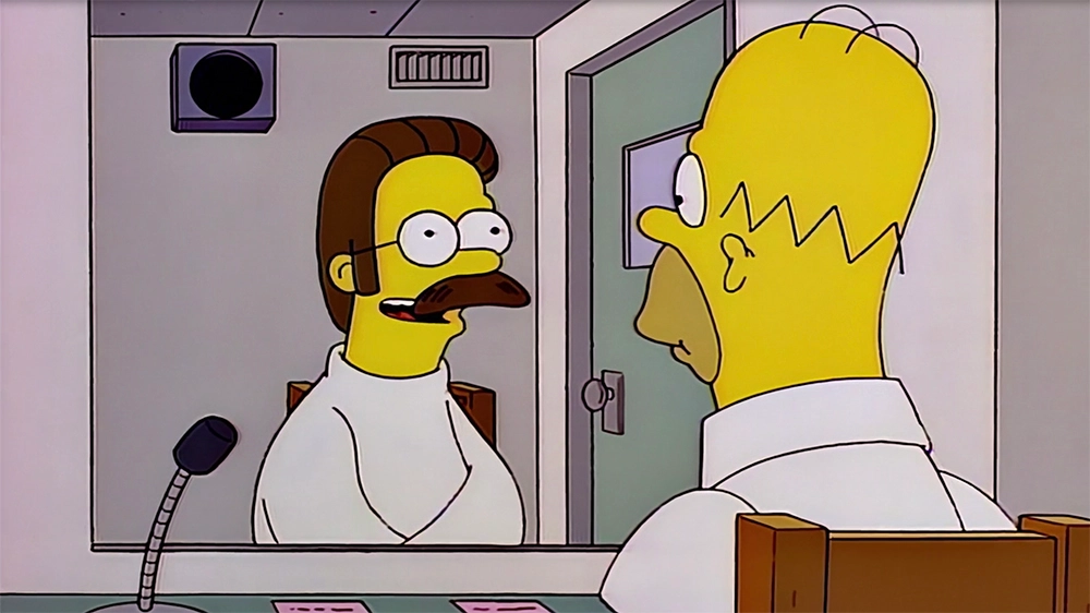 Image source Disney PlusA hurricane takes out Flanders’ house and his friends and neighbours help to rebuild it. The attempt is so bad, it drives him straight to the mental institution where viewers get a back-story of his childhood. We see he is a repeat patient, with anger issues and the house scenario had taken him over the edge again.
