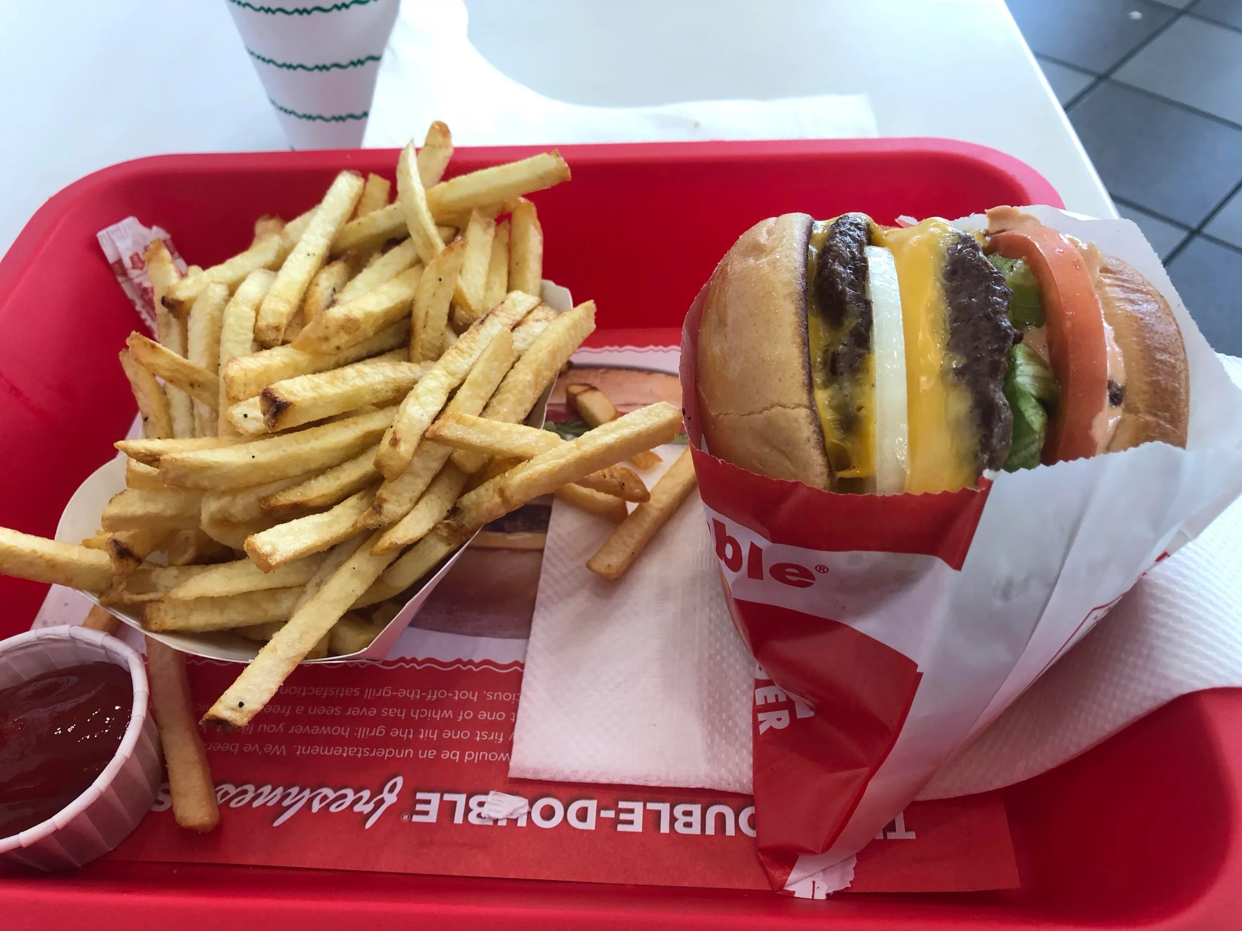 Employees say that In-N-Out prides itself on two things. One is the freshness of their meat and ingredients. The other is presentation. That's why they'll never place a combination of more than two burgers and two fries on a tray. If you need help carrying your food to the table, just ask an employee, and they're on it!Advertisement