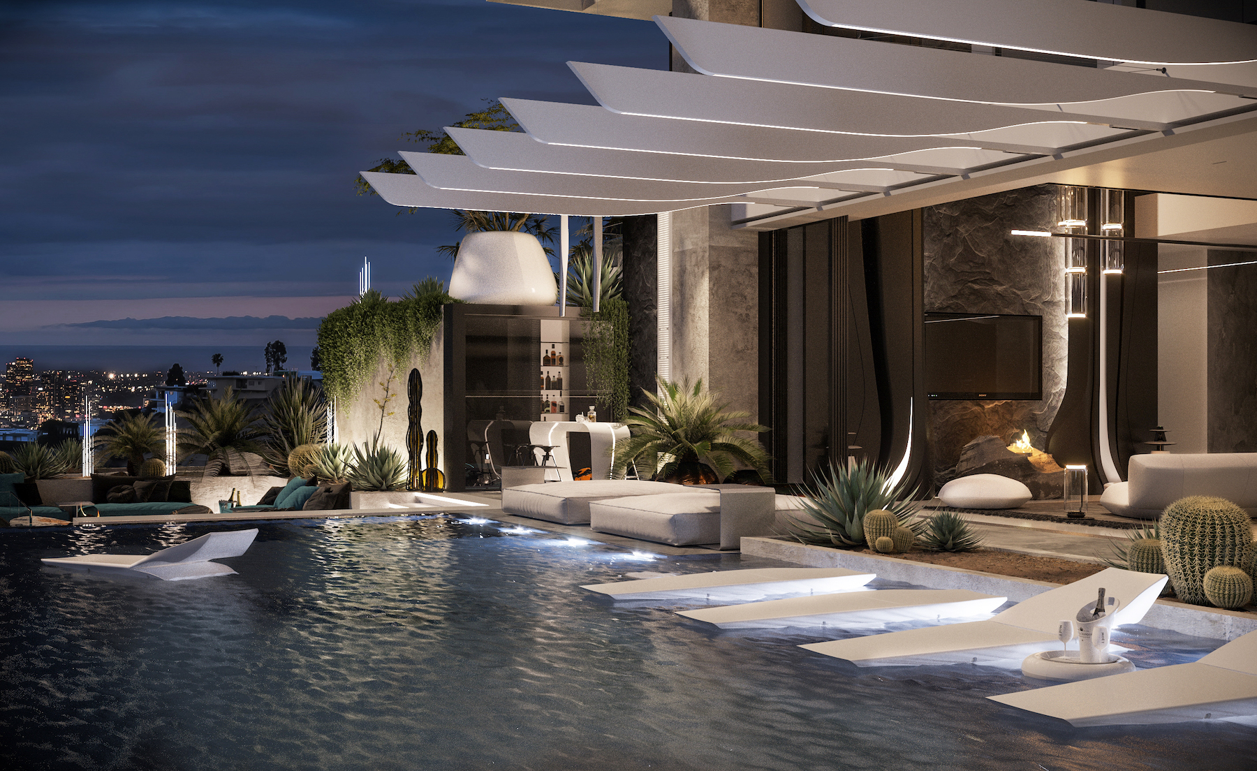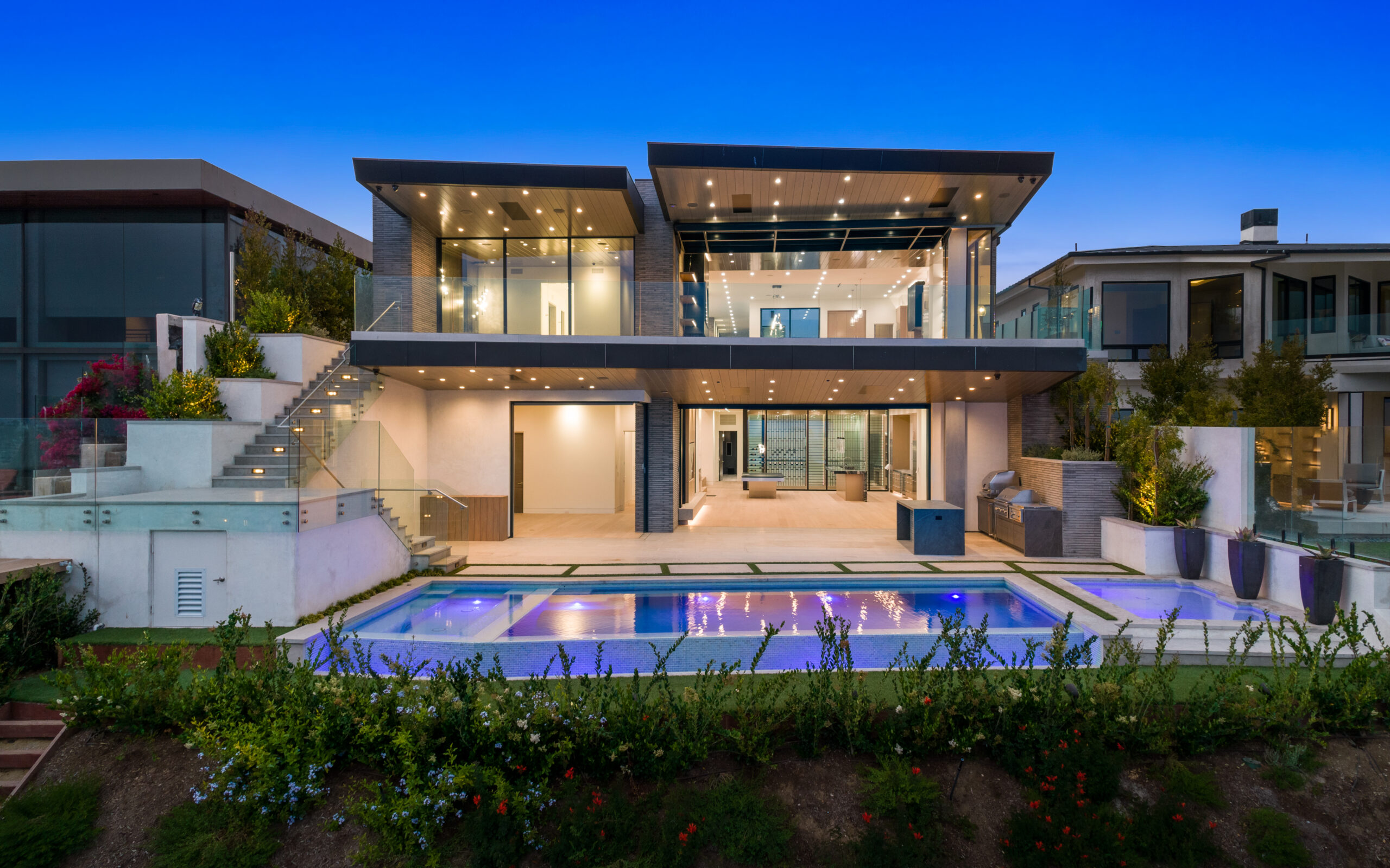 Coming in a $4.9 million, privately hidden away near the sunset strip. The roof Is equipped with a gas fire pit, a kitchen and a plethora of TV's. The house has 4 beds and 3 bathrooms. Like many others on this list, this property has an insane view of downtown Los Angeles.Advertisement