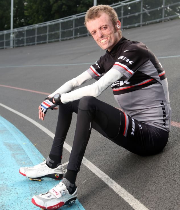 Image source Daily MailTom Staniford is from Exeter, England, and has a career as a para-cyclist. His condition, MDP syndrome, means that he has a disorder with the connective tissue in his body, which affects his feet and hands. He has very poor flexibility in his limbs, diabetes, hearing loss and a condition called lipodystrophy which affects the way fat is distributed around the body. It's a very rare genetic condition resulting in him being the skinniest man!