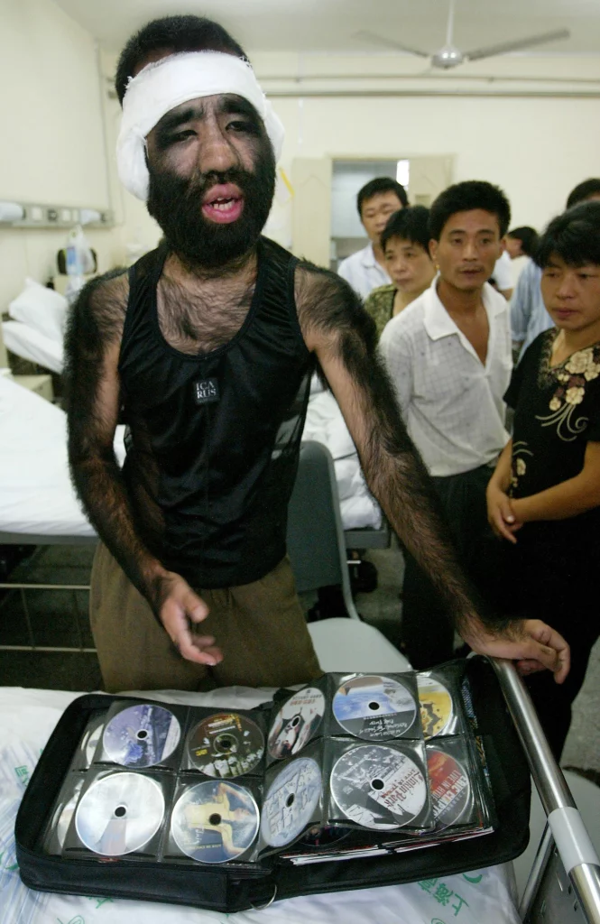 Image source The SunIf you moan about having to shave your armpits once a week, then take pity on Yu Zhenhuan of China who is officially the most hairy man in the world. With 96 per cent of his body covered in fuzz, he has made a good living out of his unusual appearance. He is, however, contemplating surgery to remove a couple of carrier bags full of hair.