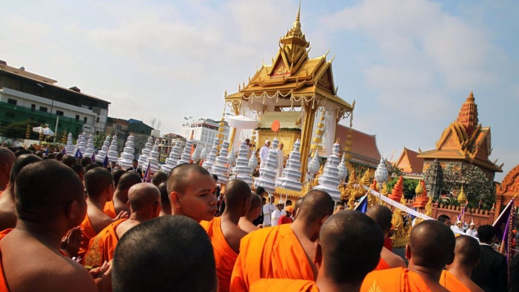 Image source VoA CambodiaBuddhists in Cambodia believe that death is merely the end of one life cycle, rather then the end of life completely. They believe in more then one cycle of life, with the cycle being birth - adolescence - old age - death - reincarnation. They carry out very specific rituals in order to make sure the next stage of the cycle is complete. Monks can be seen carrying coffins.