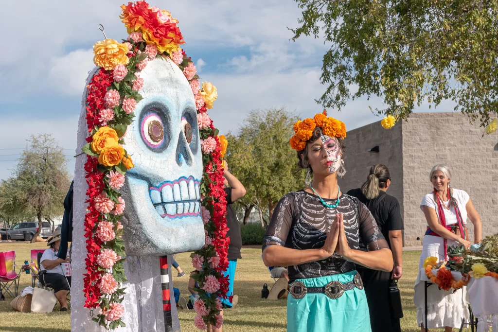 Image source The TennesseanThe Mexican tradition and celebration, Day of the Dead, is a well known custom, and mostly because it's a celebration of the dead rather than grieving. Mexicans believe that you shouldn't mourn the dead, and instead, once a year they return to this world. In celebration, Mexicans will set up altars and provide offerings, including food, drink and photos.