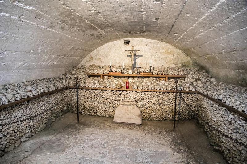 Image source DreamstimeThere's Cornish folklore that's responsible for this bizarre burial custom.  Apparently, a man accepted a bet to steal a skull from his parish's charnel house (a building used instead of a cemetery).  When he picked up a de-fleshed skull, it apparently spoke to him and he got spooked out.  It's thought that these charnel houses have the spirits visit them and many people wanted to bury their dead here for that reason.