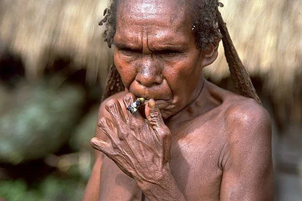 Image source PinimgAmong the Dani People of Papua New Guinea, the death of a loved one meant that any women and children related to the deceased knew that drastic measures were to follow.  As was tradition, they each had to have at least one finger chopped off, to drive away spirits.  No anaesthetic was administered so you won't be surprised to hear that this has now been banned.