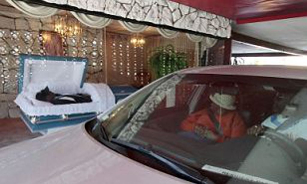 Image source Daily MailDrive-thru is a common practice when picking up a burger but in Los Angeles, Adams Funeral Home have a drive thru funeral business and it's really popular.  It's cheaper than a normal funeral and much quicker which will suit many mourners who are unable to shell out a fortune for a funeral.