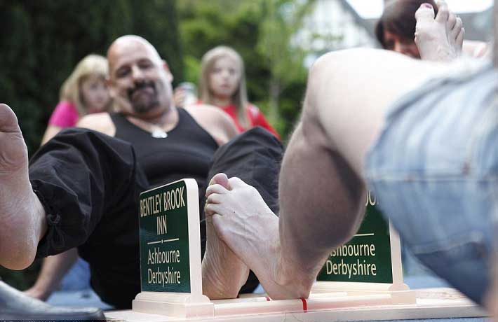 Image source WikimediaThis is yet another weird sport that welcomes those with toes to have a go! It's similar to toe wrestling you might have done as a kid but is now a major sport, believe it or not, involving a World Toe Wrestling Championship. It's origins started in a pub in Derbyshire and is tougher than it looks.
