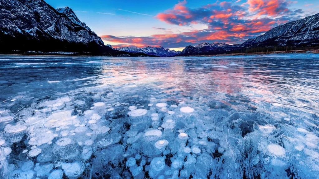 This spectacular lake is the largest reservoir in Alberta, a place full of natural wonders and stunning scenery. What is so special about this like? Well, during the winter season the lake freezes to reveal thousands of white bubbles below the surface!